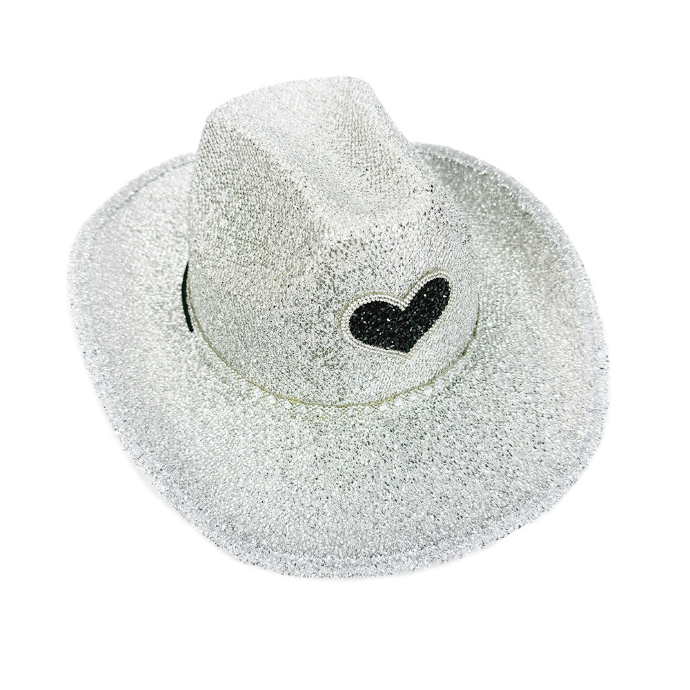 シルバーグリッターフェザーラブカウボーイハット グリッターシルバーピーチハートカウボーイハット チャンキーグリッターチャンキーパウダーカウボーイハット