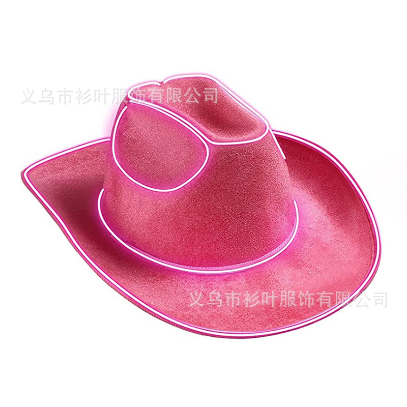 ハロウィンコールドライトピンクカウボーイハットピンクコールドライトディックカウボーイハットLEDライトラインカウボーイハット