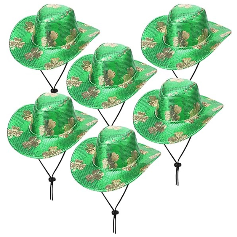 在庫あり 聖パトリックの日 グリーン スパンコール カウボーイ ハット アイルランド グリーン クローバー ウエスタン カウボーイ ライト付き帽子