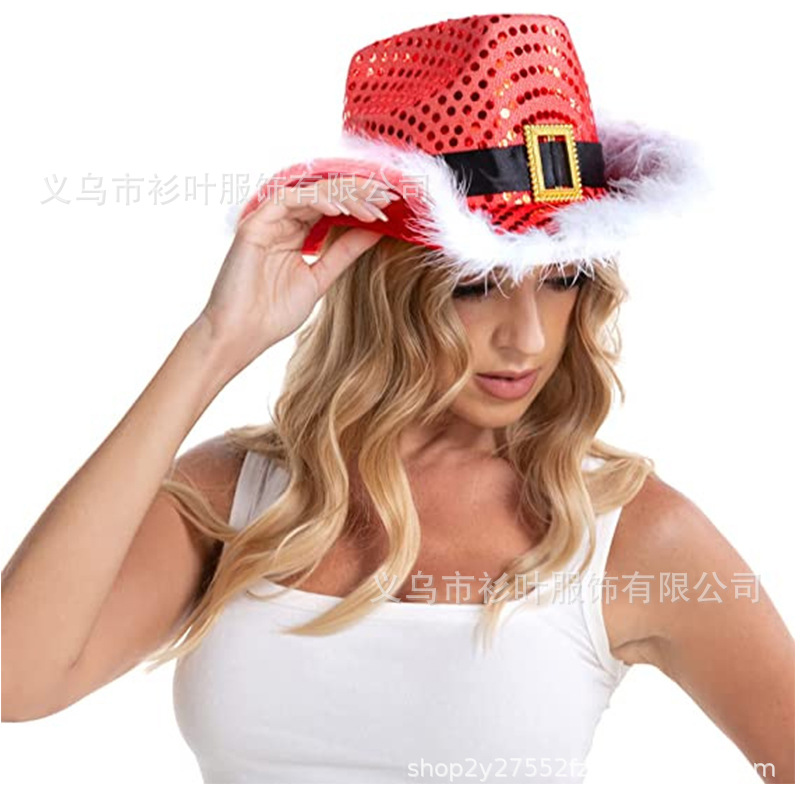 赤いスパンコール付きベルト、ライト付きローエッジカウボーイハット、メーカーのライト付きウエスタン、ライト付きクリスマスレッドカウボーイ複合ハット
