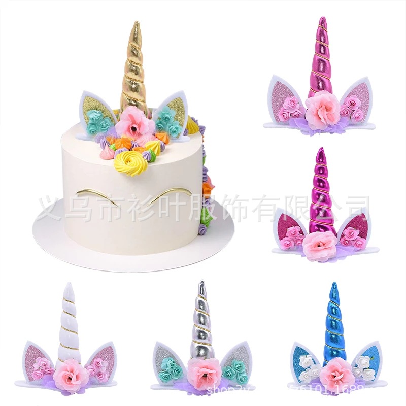 子供用ユニコーンケーキデコレーションテーマ誕生日ケーキインサートまつげセットベーキングデザートテーブルインサート