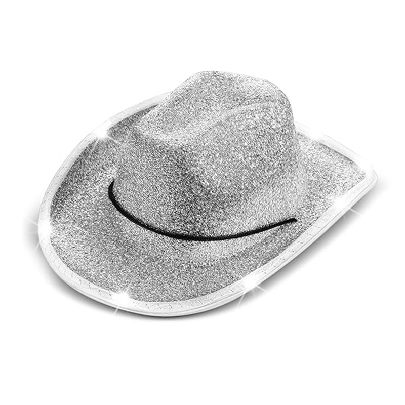 ライト付きシルバーグリッターカウボーイハット ウエスタンカウボーイフェザーリボンライト付きカウボーイハット 複合EVAグリッターカウボーイハット