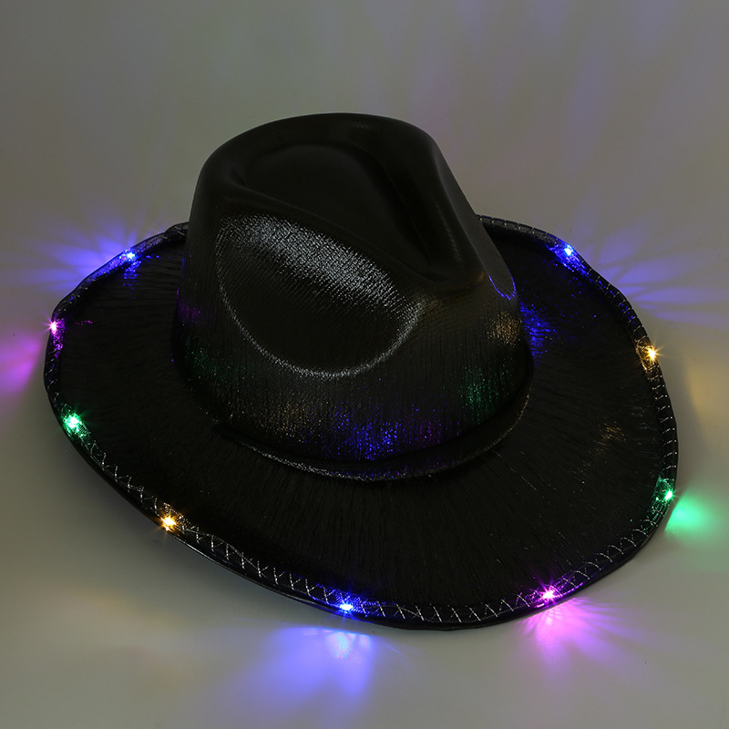 ハロウィンパーティー黒蛍光ライトカラフルなカウボーイハット黒ウエスタンスタイルカラフルな真珠光沢のあるレーザー帽子