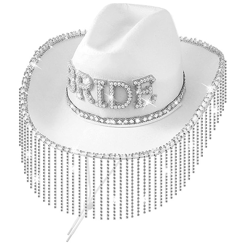ホワイトブライダルラインストーンカウボーイハットAmazon BRIDEラインストーンタッセルダイヤモンドブライダルウェディングカウボーイハット在庫あり