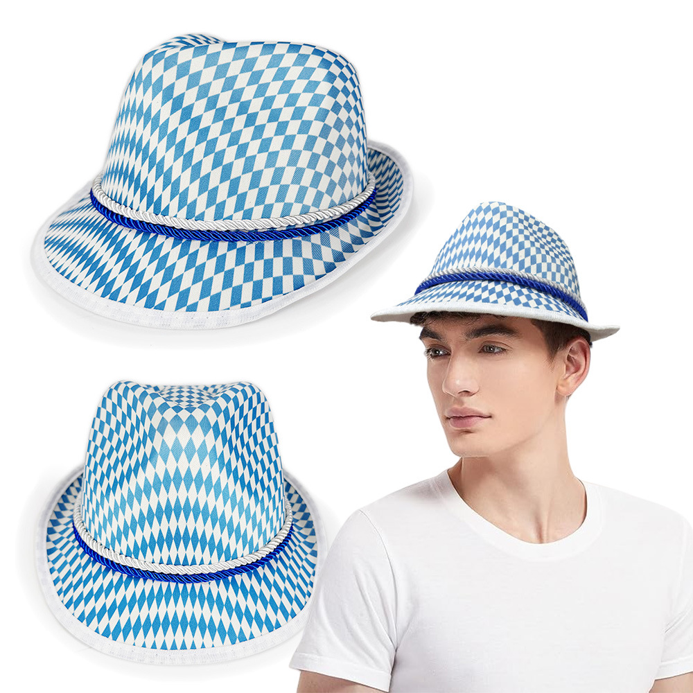 スポットビール祭りパーティー热い贩売ブルーホワイトひし形格子复合ジャズキャップドイツカーニバルビール礼帽