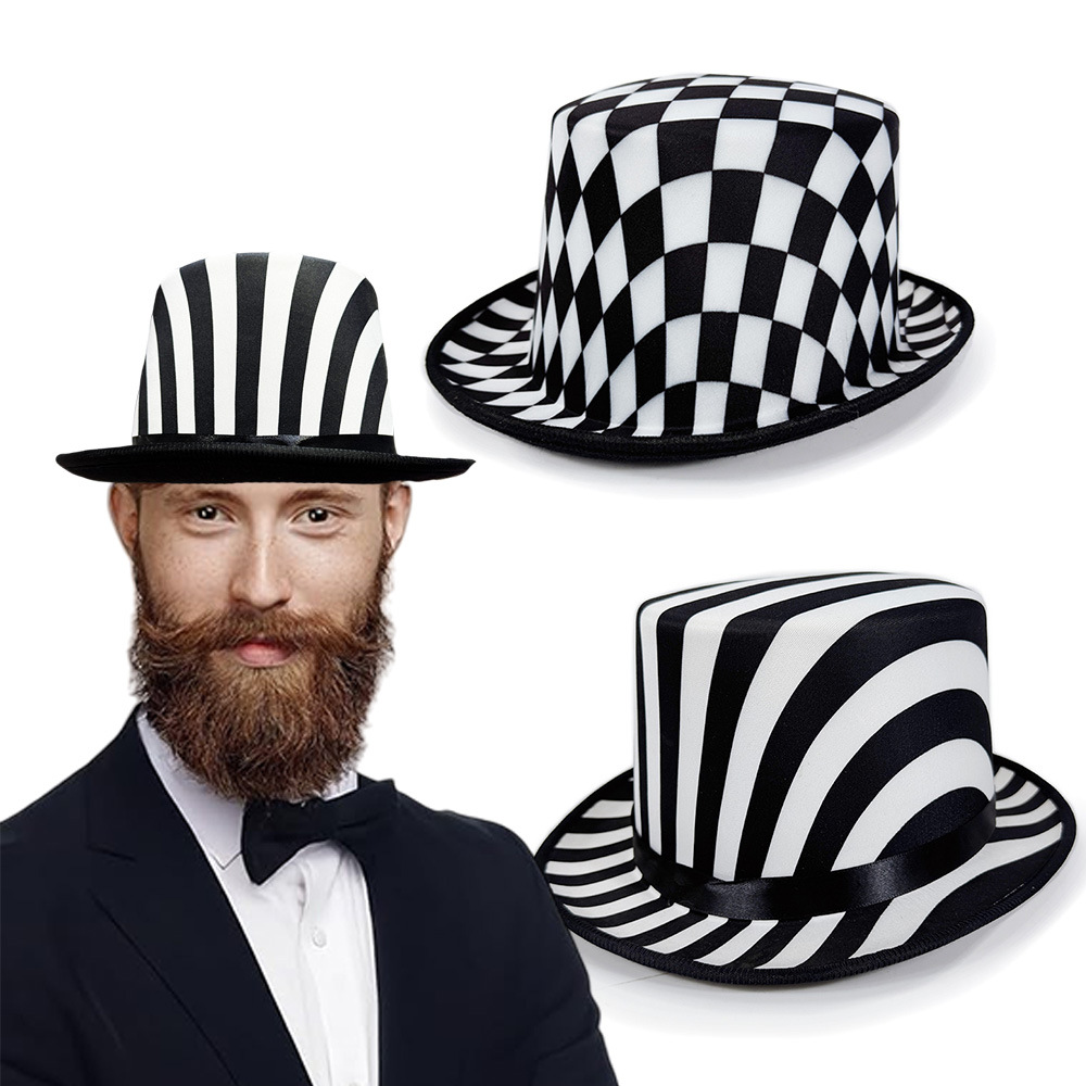 スポット黒と白のストライプマジシャンリンカーンキャップカーニバルパーティーボード格子ジャズトッパーステージショー