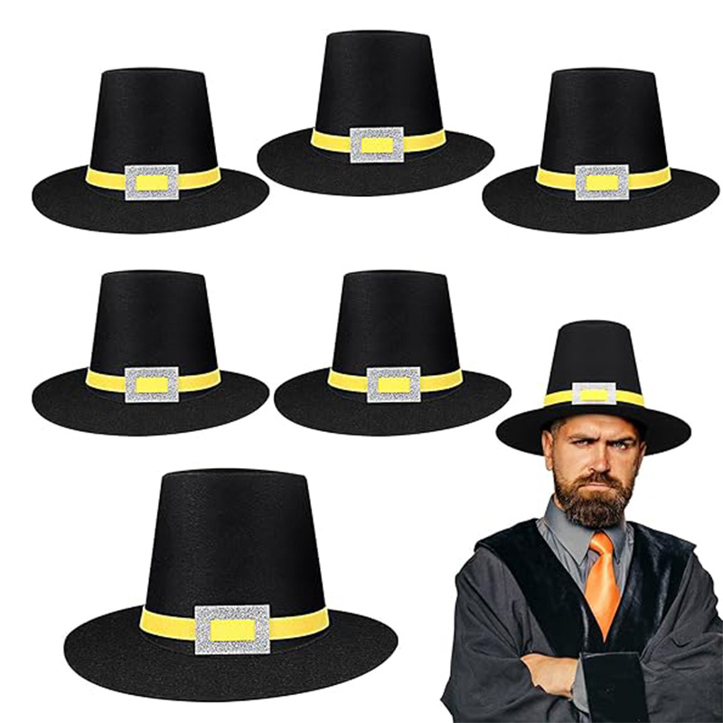 感謝祭黒フェルト帽子感謝祭大人黒巡礼帽子ゴールドバックル付き巡礼帽子コスチュームシルクハット