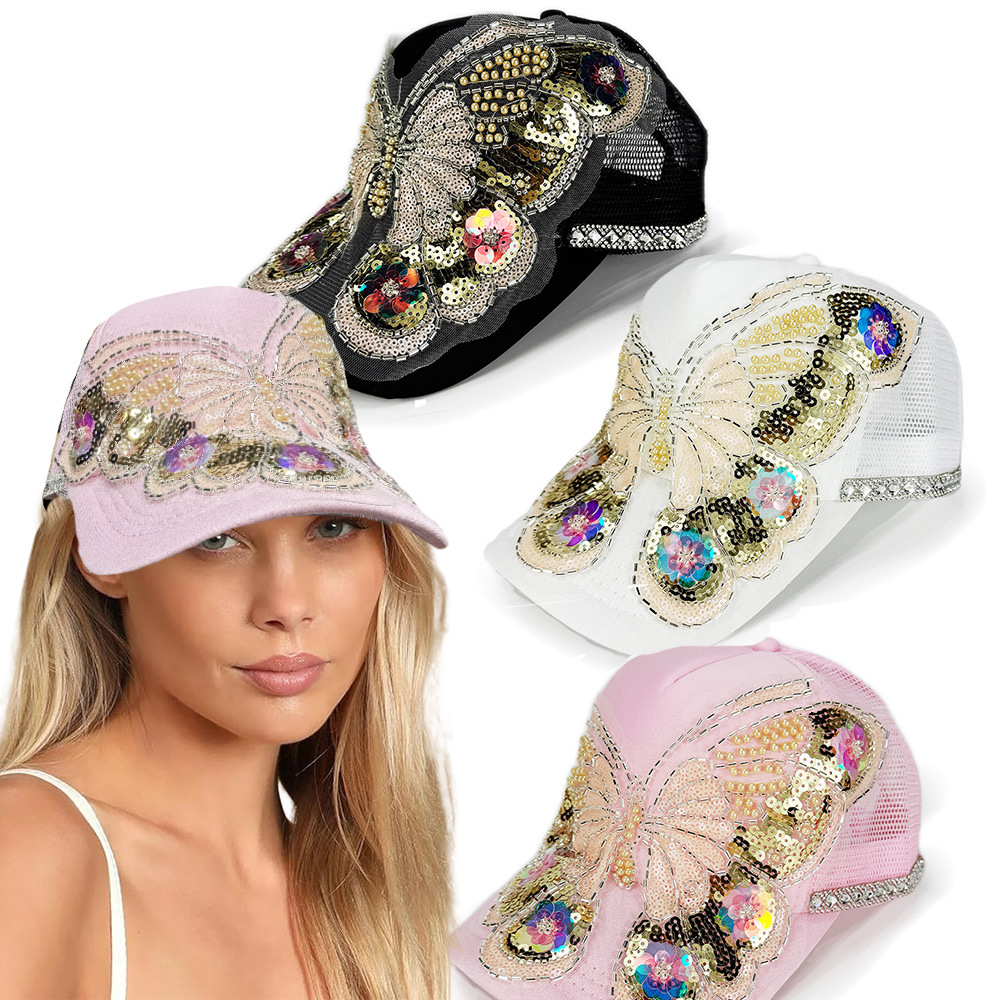 新しい誕生日パーティーカーニバルステージパフォーマンス蝶スパンコール野球帽ピンク明るいダイヤモンドサンバイザーキャップ