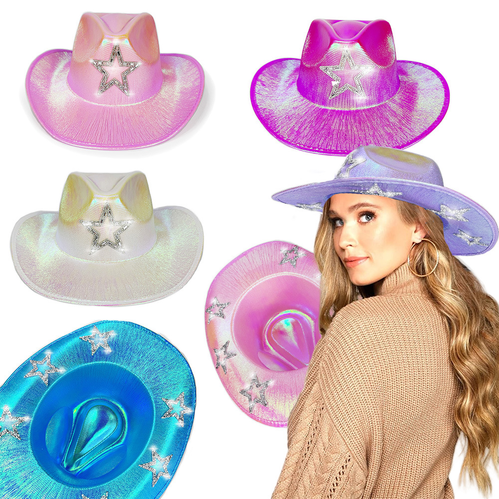 スポットカラフルなイリュージョン真珠光沢のあるウエスタンカウボーイハットウェディングカーニバルパーティー超フラッシュダイヤモンド五芒星シルクハット