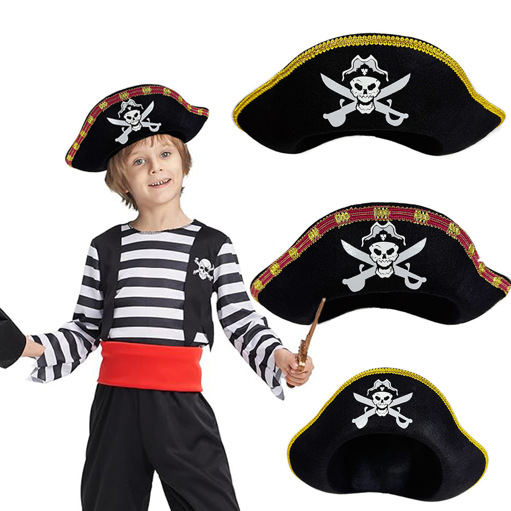 在庫ありハロウィンパーティー子供用スカル熱転写海賊帽子パイレーツオブカリビアンパフォーマンスハットキャプテンジャックハット