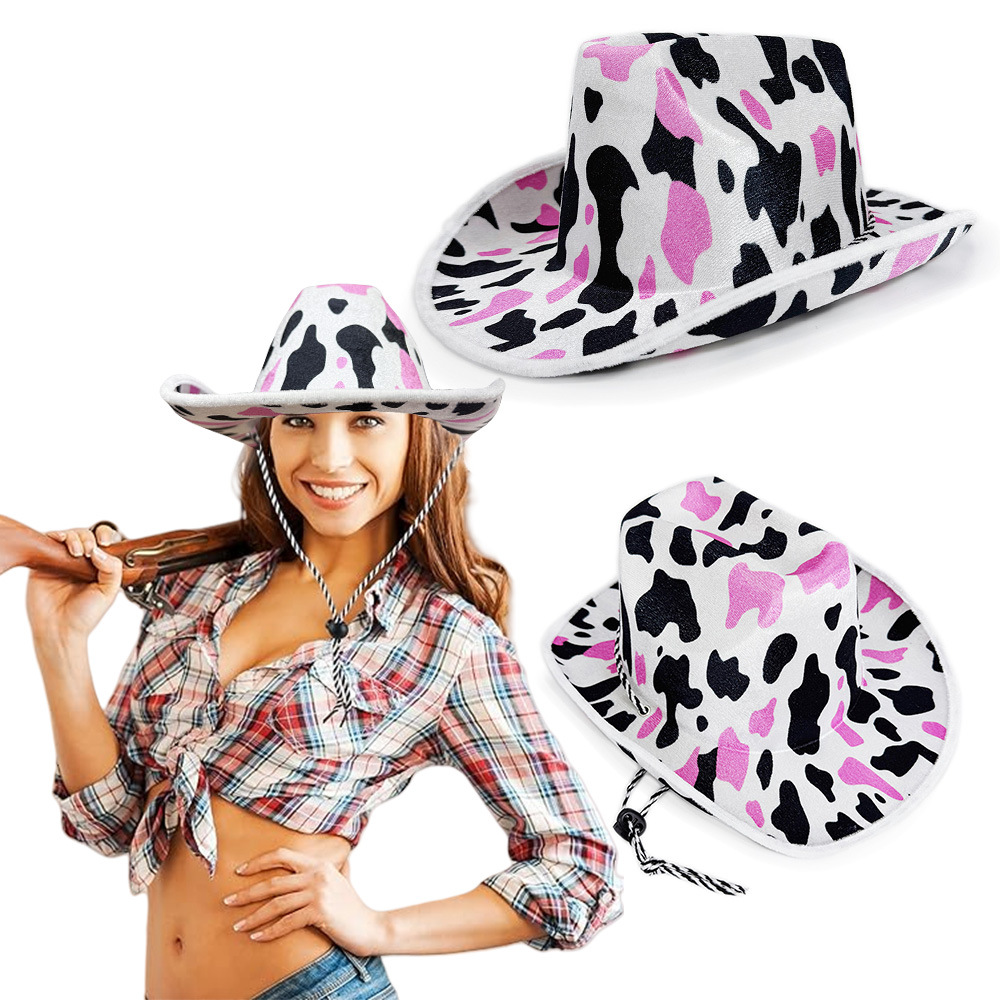 新型黒粉ミルク牛紋西部カウボーイ帽ハロウィーンパーティー動物紋礼帽両面パイル複合帽