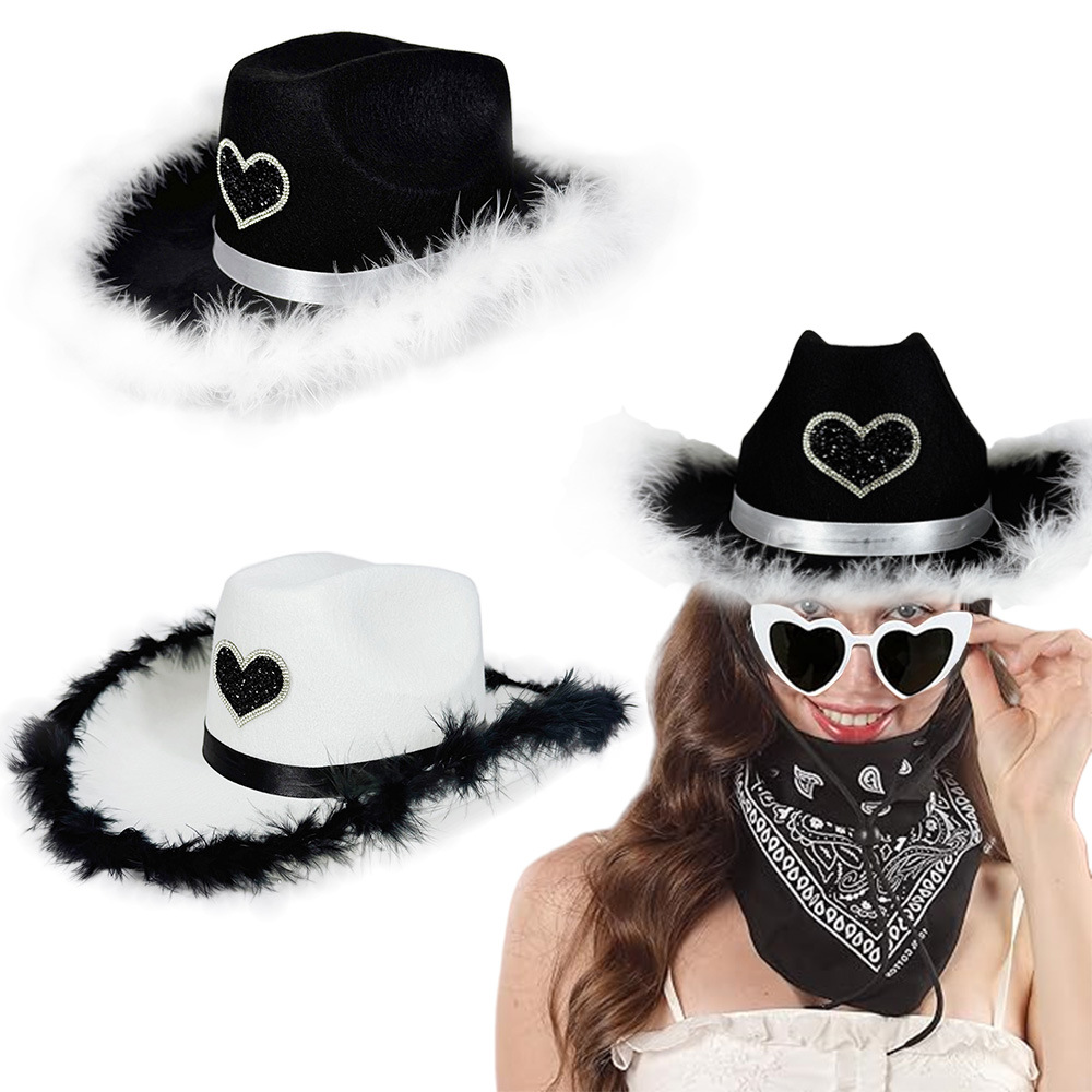 ホワイトデーの黒いダイヤモンドの愛の毛の縁のカウボーイの帽子の結婚式の季節のパーティーの白黒の帽子のカーニバルの帽子