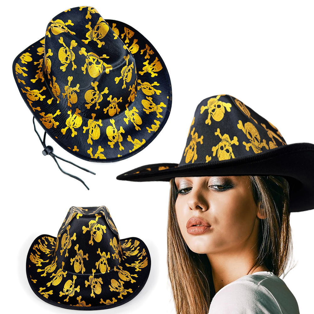 新しいハロウィンゴールデンスカルカウボーイハットカーニバルパーティーゴーストフェスティバルステージパフォーマンスキャップEVA複合装飾キャップ