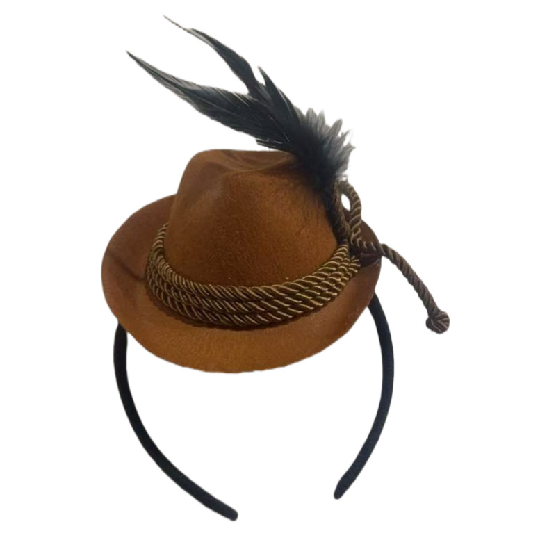 クロスボーダー ブルワリー ブラウン ロープ フェルト シルクハット ヘッドバンド カーニバル ブラック フェザー ハット ジャズハット
