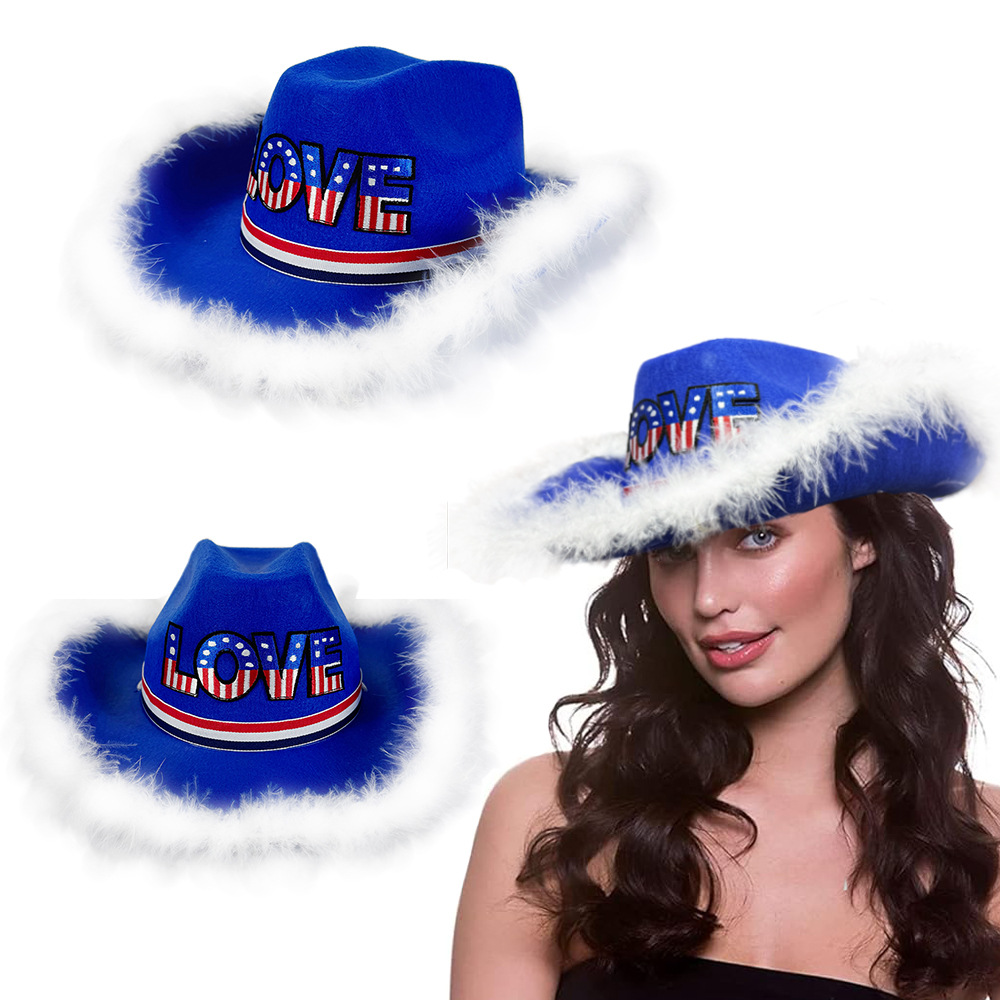 新しいアメリカ独立記念日ブルー生端ウエスタンカウボーイハットカーニバルパーティー赤白と青のトリコロール縁取り帽子