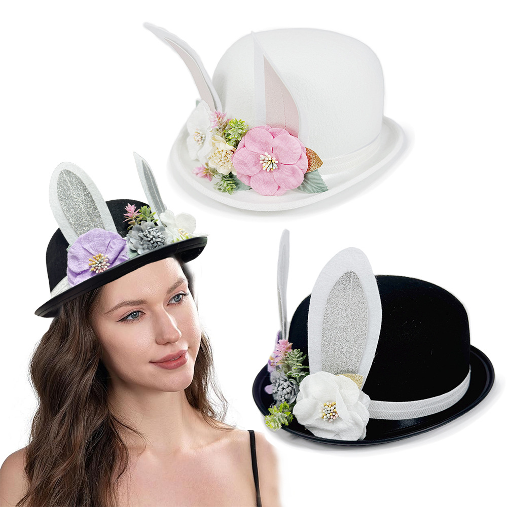 クロスボーダーイースターピンクのウサギの耳の小さい丸い帽子のカーニバルのパーティーのかわいいウサギのショーの帽子の黒いウサギの耳の帽子