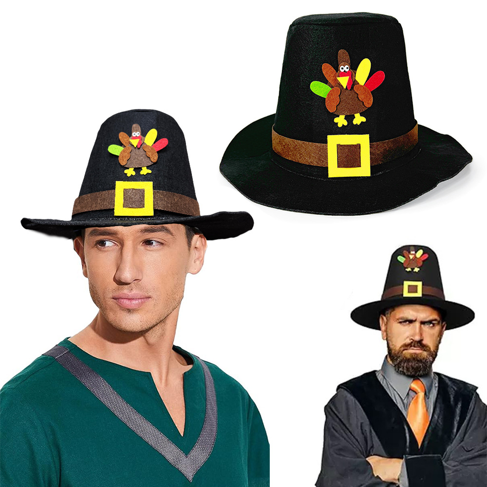 在庫あり感謝祭パーティー黒七面鳥ラベルフェルト折りたたみ帽子朝聖者七面鳥黒装飾帽子
