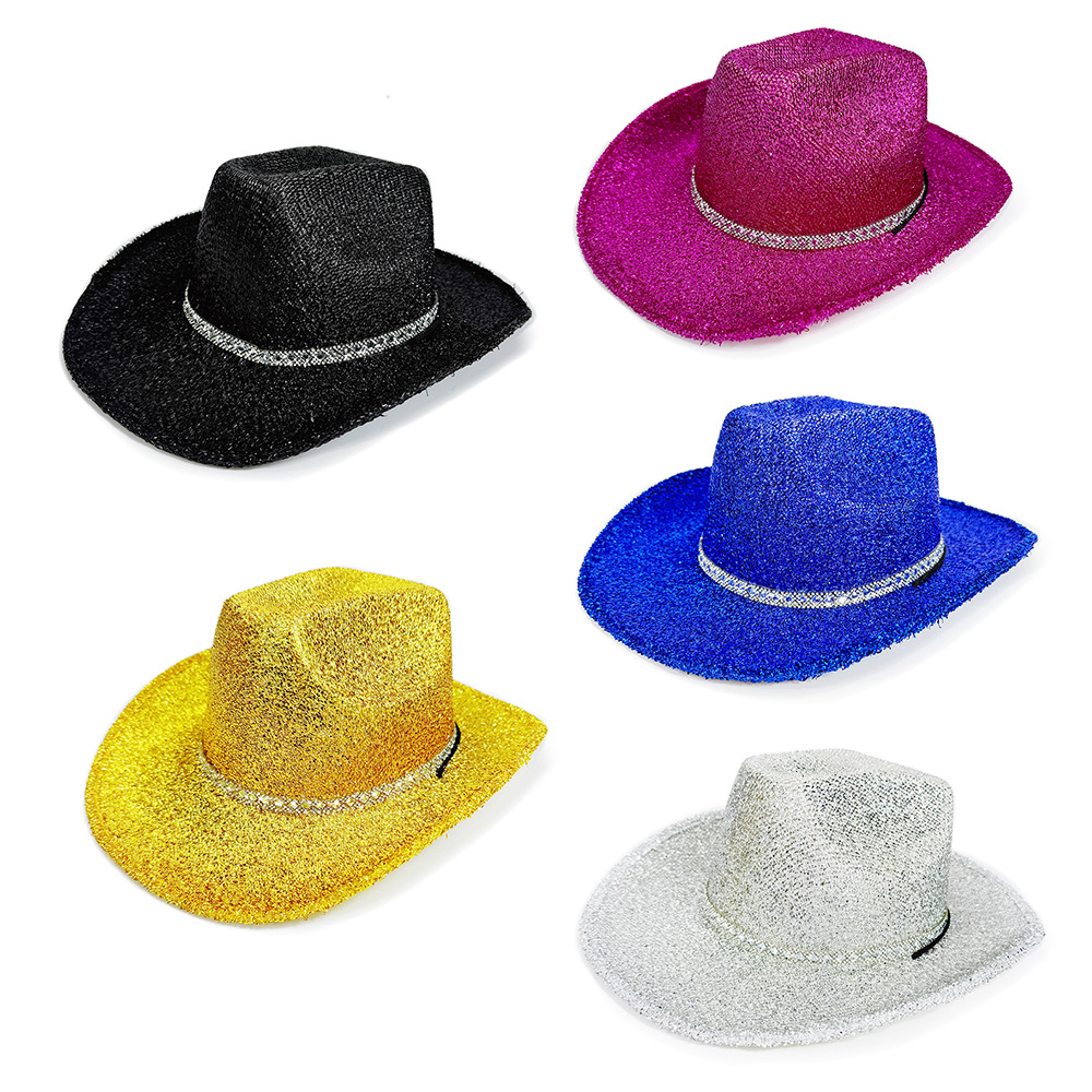 スポット新スタイルフェザーシルクダイヤモンドストリップエッジスーパーフラッシュウエスタンカウボーイハットハロウィンカーニバルパーティーのカラフルな帽子