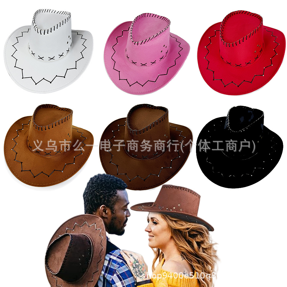 現物の外国貿易のスエードの布の屋外の広い軒の西部のカウボーイの帽子のカーニバルのパーティーの復古的なカラーの旅行の日よけの帽子