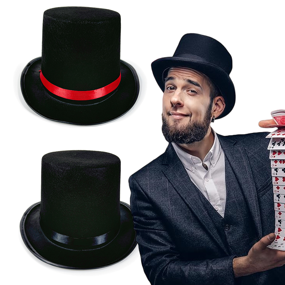 現物演出黒リンカーン帽レトロ英倫ジャズ帽クリスマスカーニバル赤リボン黒リンカーン帽