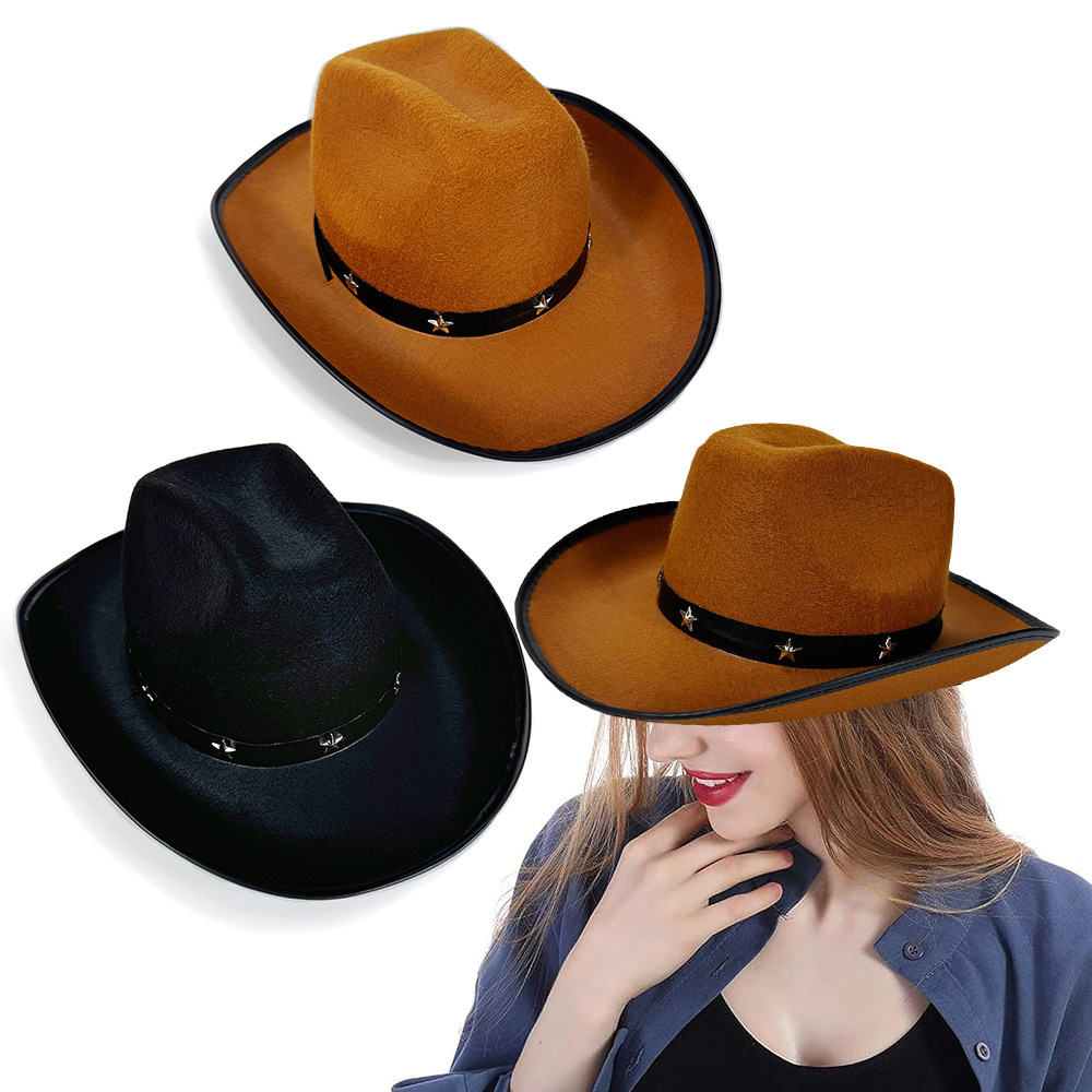 現物クロスボーダー五角星リベット西部カウボーイ帽パーティーリベットベルト茶色ディックデニムハット