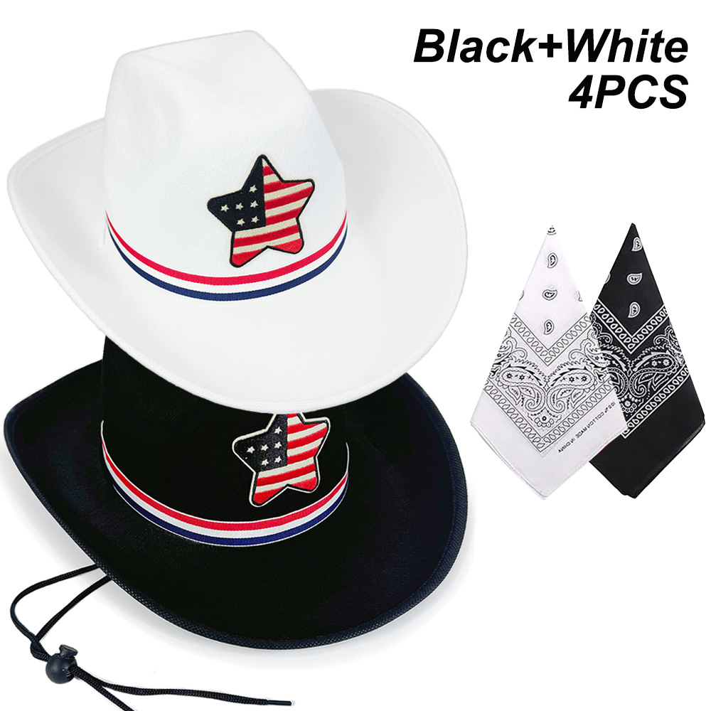 アメリカ独立記念日青白青縁五芒星カウボーイハットカーニバルパーティーハット国旗スクエアスカーフ2点セット