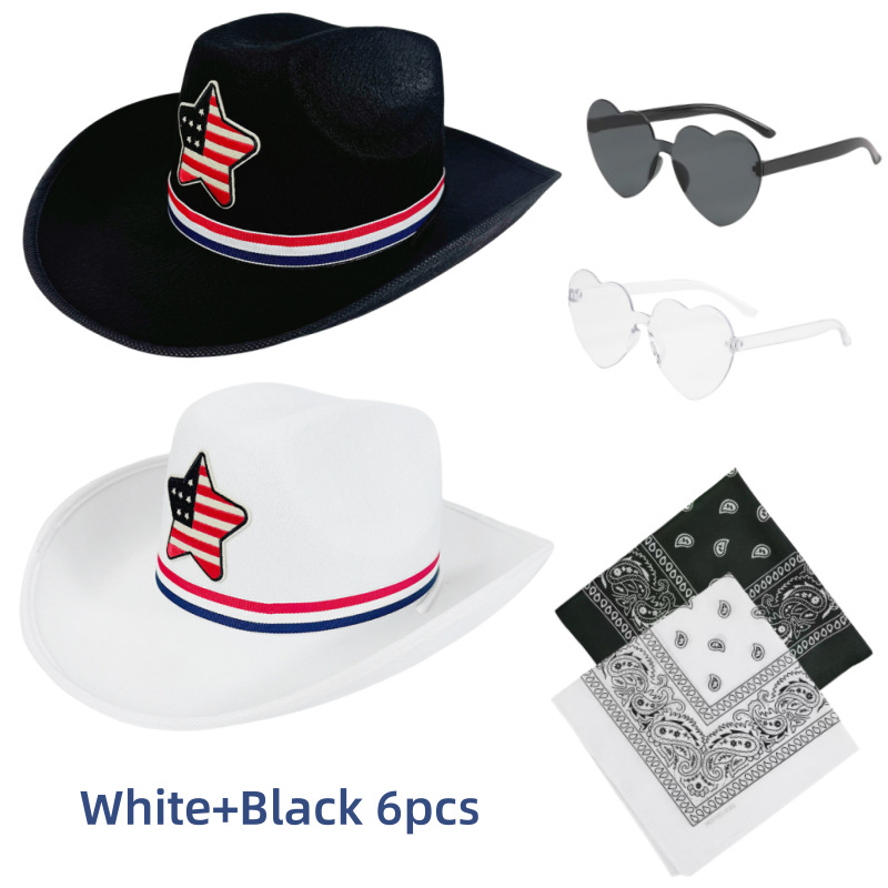 現物クロスボーダー白色五角星西部カウボーイ帽三点セット結婚式パーティーピンク眼鏡シルクタオル