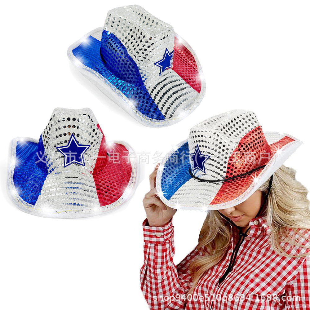 アメリカ独立日帯灯三色五角星カウボーイ帽カーニバルパーティー赤白青アメリカ国旗点灯帽