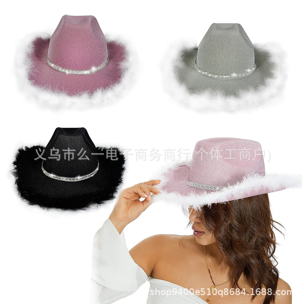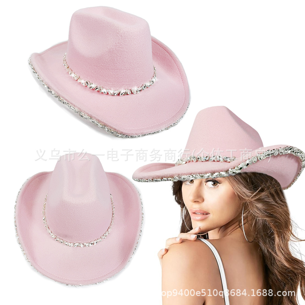 新商品アマゾンピンク花柄チェーン毛ラシャ帽花嫁パーティー西部カウボーイ帽浮かれ騒ぎパーティー冬帽