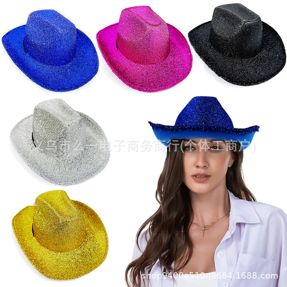 現物フラッシュ粉ドリルカウボーイ帽浮かれ騒ぎパーティー銀粉カウボーイ帽西部カウボーイパーティーEVA複合帽