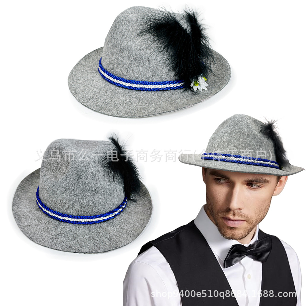 クロスボーダードイツビール祭りパーティー三色トッパーグレーフェルトブラックフェザースタイリングキャップ赤白青三色キャップ