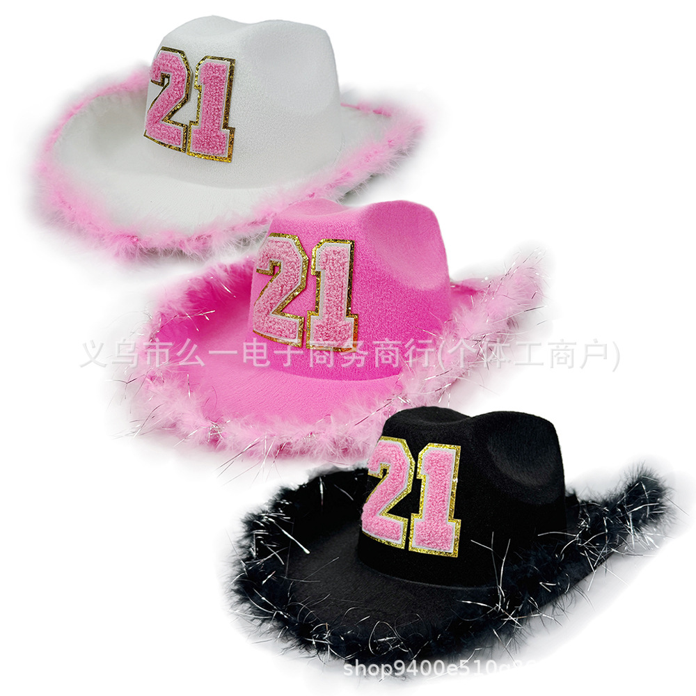 新しい誕生日女の子ピンクの毛の縁のカウボーイの帽子の白い誕生日のパーティーの帽子のかわいいbirthday装飾の帽子