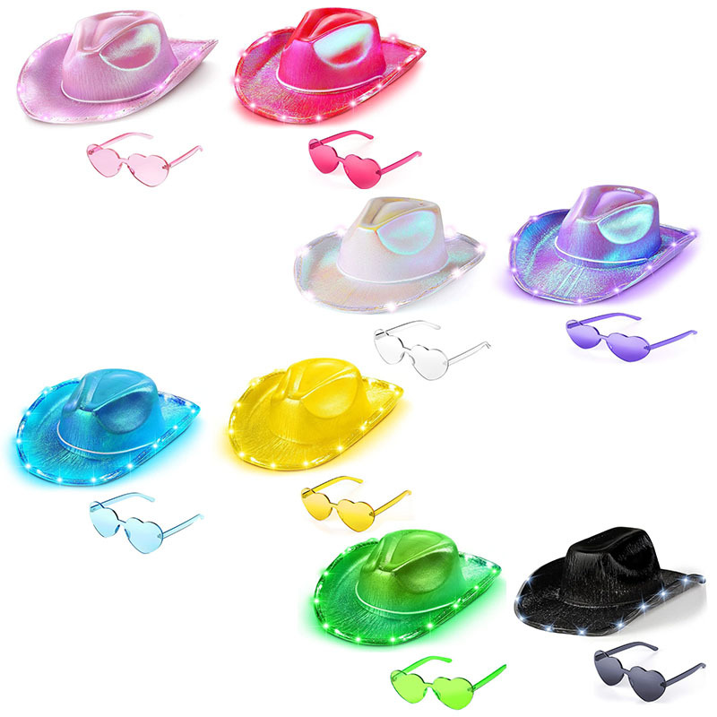 アマゾンのカーニバルパーティーのカラフルなカウボーイ帽のメガネセットのカーニバルパーティーのギャルの風情の幻の帽子セット