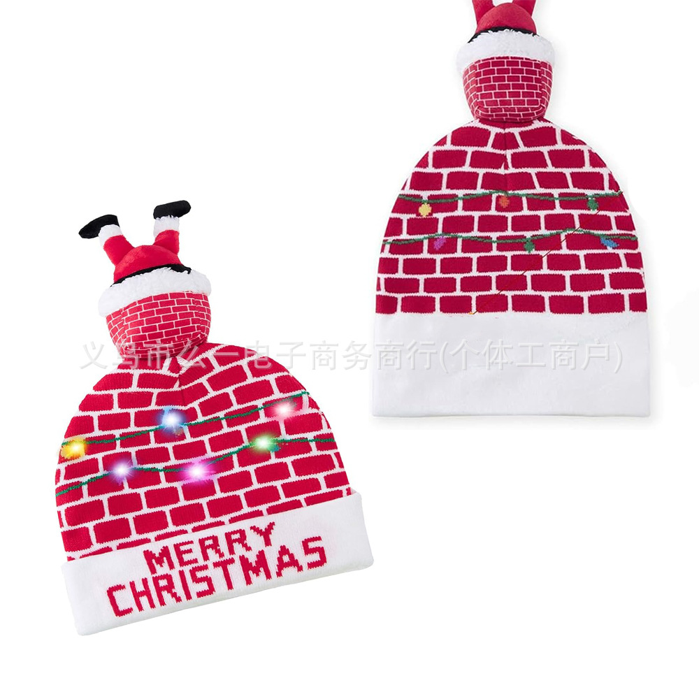 新しい国境を越えたクリスマス発光クリスマス帽サンタクロース煙霧帽led発光保温ニット帽