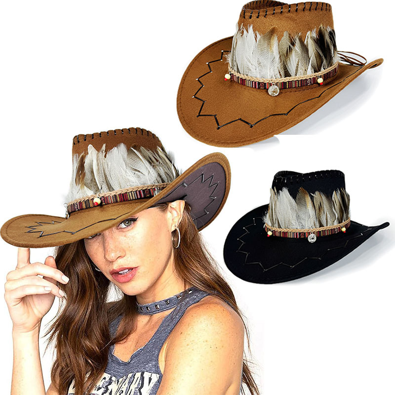 新商品クロスボーダースエードの羽の縁のカウボーイ帽アメリカ西部の風情のカウボーイ派の帽子の復古の大きなひさしの帽子