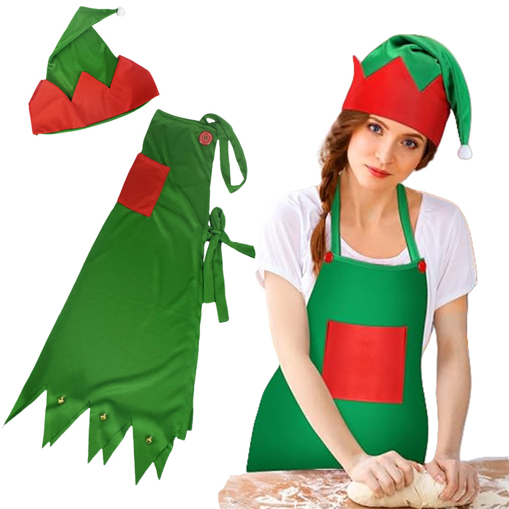 スポットエルフクリスマス帽子クリスマスエルフエプロンセットクリスマスホームキッチン不織布エプロン装飾
