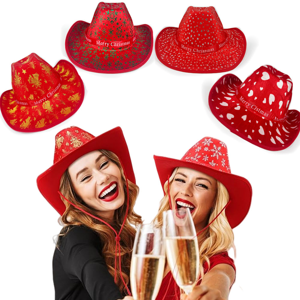 スポットクリスマス赤いプリントカウボーイ帽浮かれ騒ぎパーティー愛トッパーサンタクロース雪花飾り帽