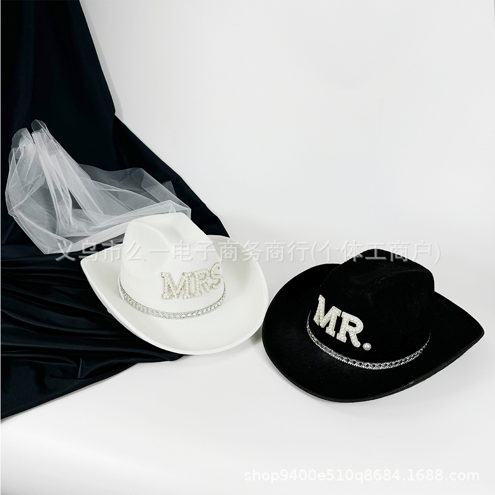 クロスボーダー黒ミスターアルファベットカウボーイハット独身パーティーmrs花嫁レディーティアードキャップbride派ペアキャップ