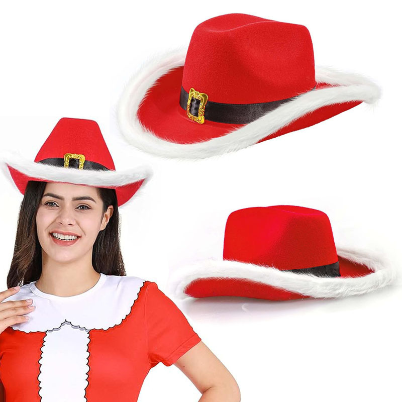新商品のクリスマスの毛の縁の西部のカウボーイの帽子のクリスマスのパーティーの爆発のジャズの帽子の集まりの赤い金は毛の縁の帽子を掛けます