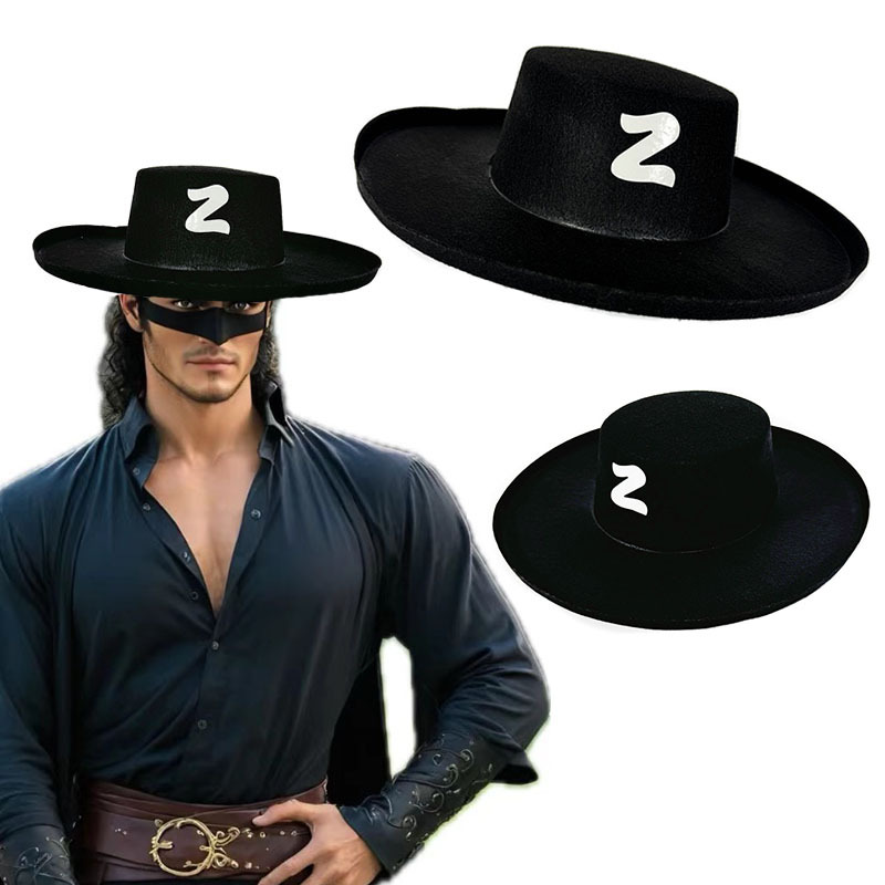 ハロウィン新品ゾロ帽欧米黒大ひさし紳士帽仮装舞踏会コスプレ帽子