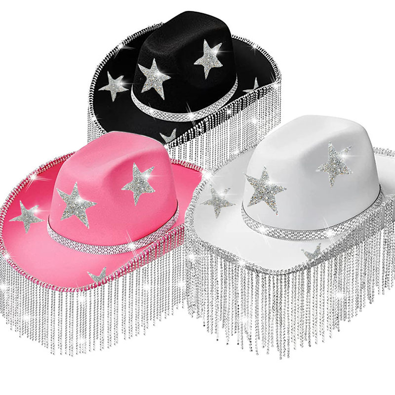 アマゾンの新型のフリンジのドリルのカウボーイ帽子は五角星の縁のカウボーイ帽子のカーニバルのパーティーのピンクの帽子を売ります。