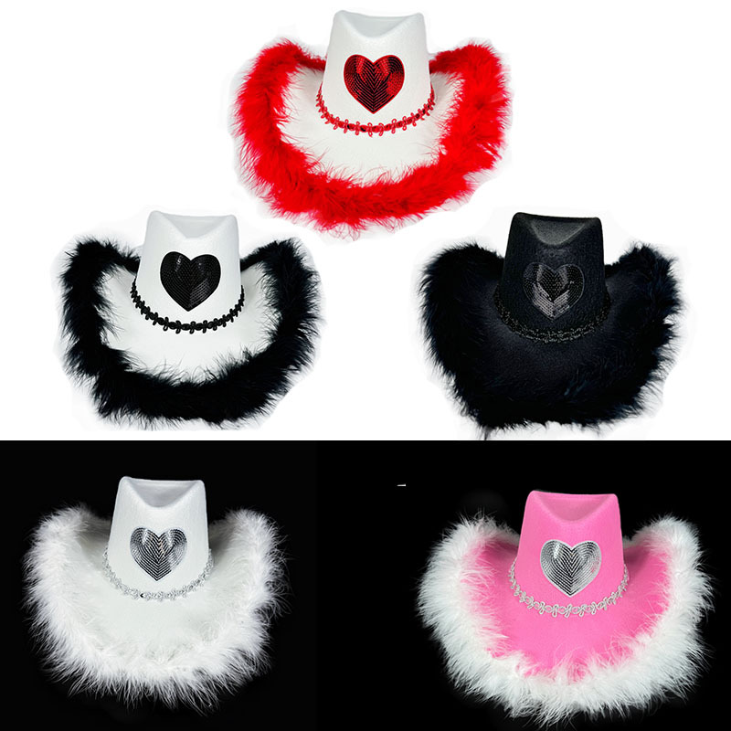 現物新商品クリスマス赤い愛の縁のカウボーイ帽カーニバルバレンタインデー結婚式パーティーの縁の帽子