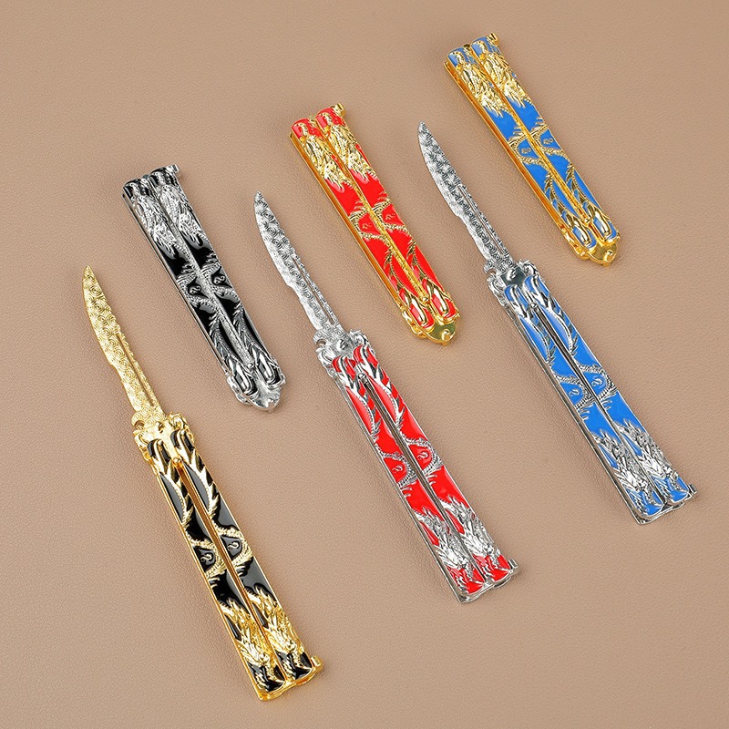 合金バタフライナイフスイングナイフ金属練習ナイフゴールデンドラゴンアサシンスイングナイフ金属モデルハロウィン小道具卸売