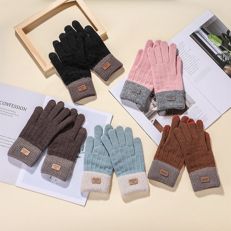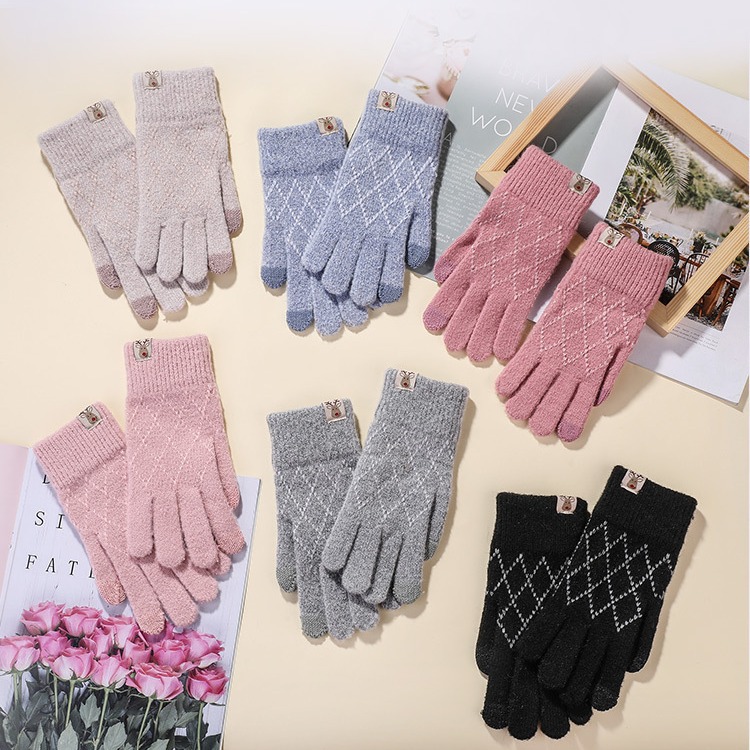 メーカーの卸売り手袋保温学生の女性とベルベットの厚いタッチパネルのニット毛糸冬の純色ジャカード防寒手袋