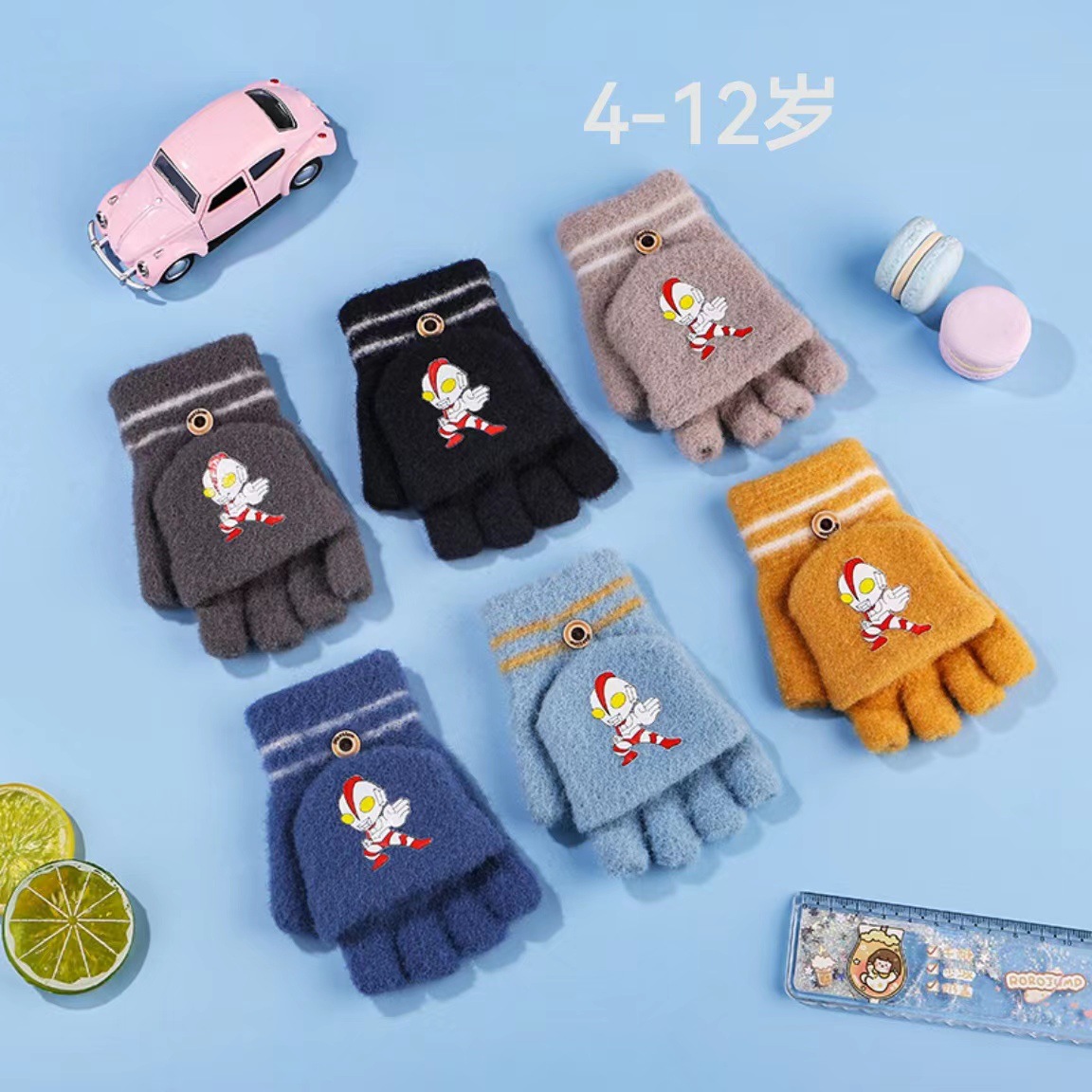 子供の手袋のニットの漫画の男の子の冬は子供の新型の保温とベルベットの中の子供のカバーを厚くして指の手袋を覆います。
