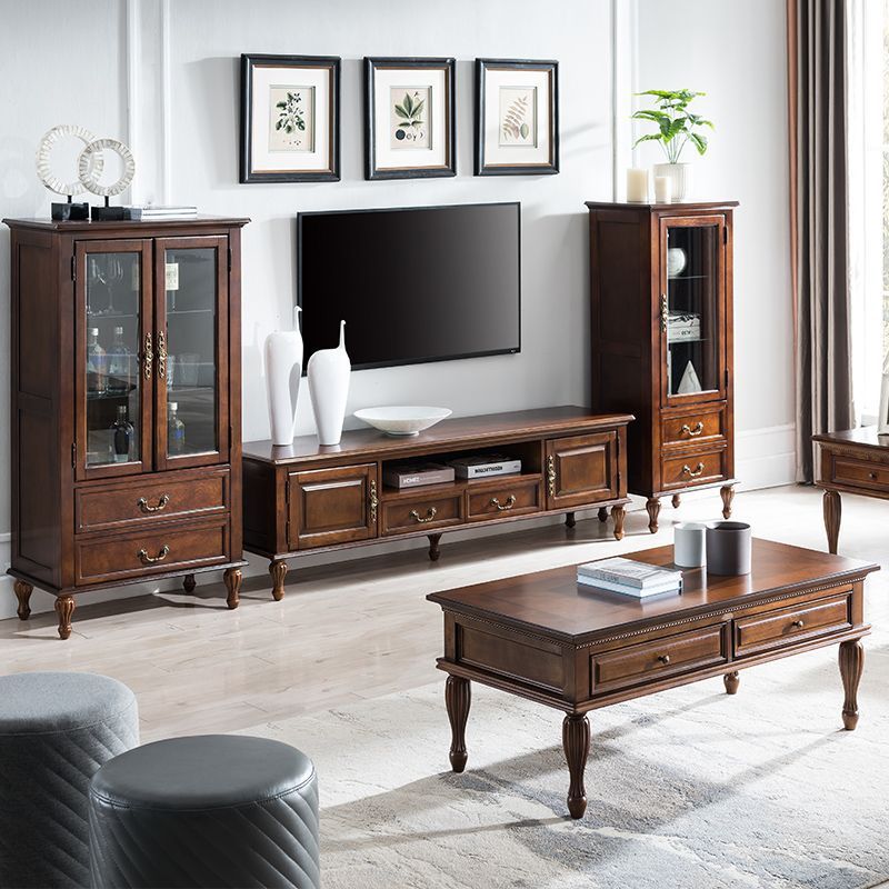 Juyou アメリカンコーヒーテーブル無垢材リビングルームティーテーブルホームレトロ長方形ティーテーブルヨーロッパスタイルの収納引き出し