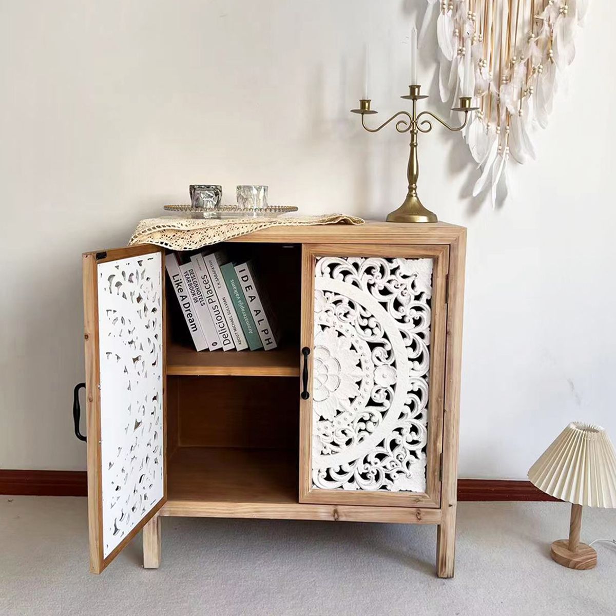 アメリカンレトロな玄関キャビネット、彫刻された木製装飾キャビネット、リビングルームの収納キャビネット、フロアサイドボード、田舎風のバケットキャビネット