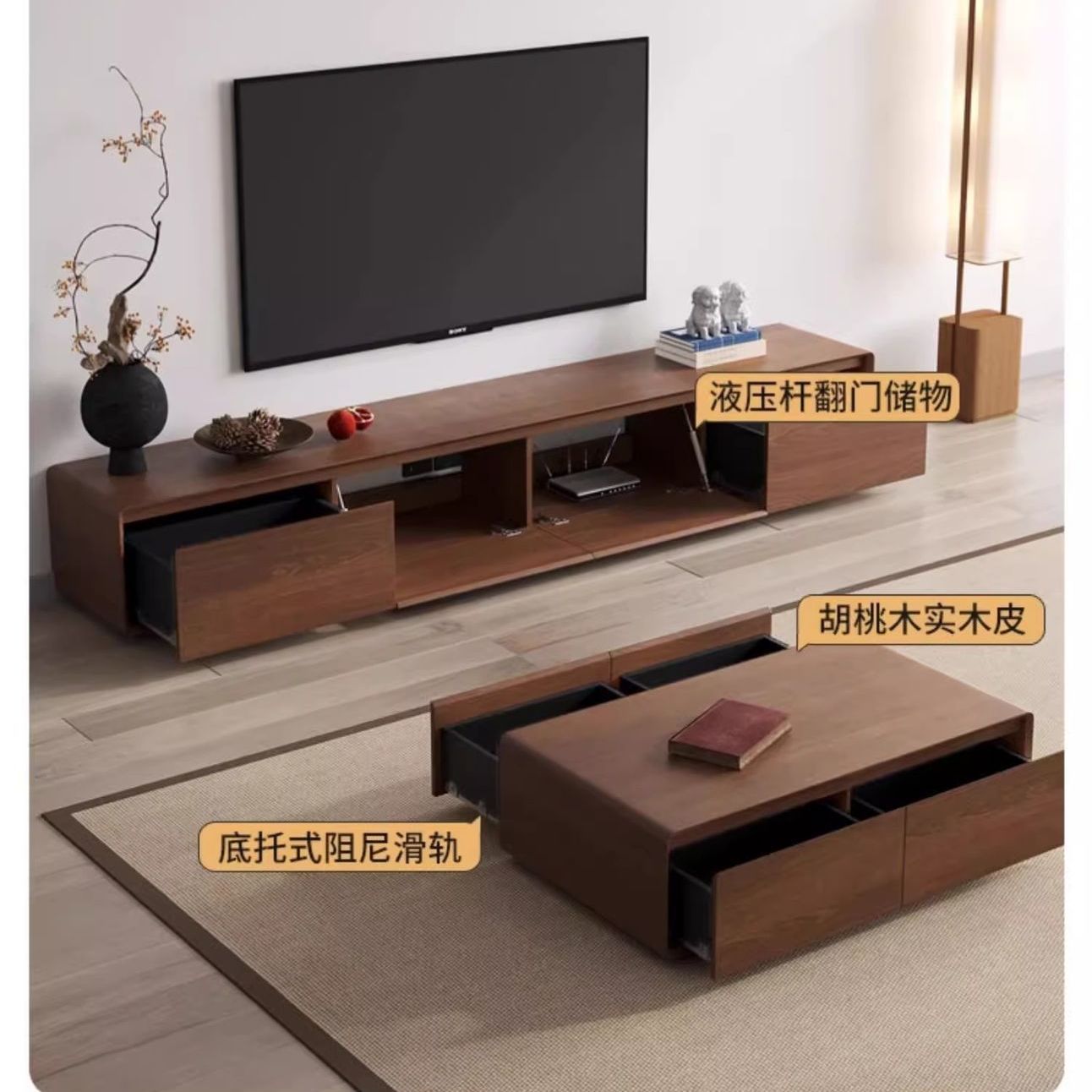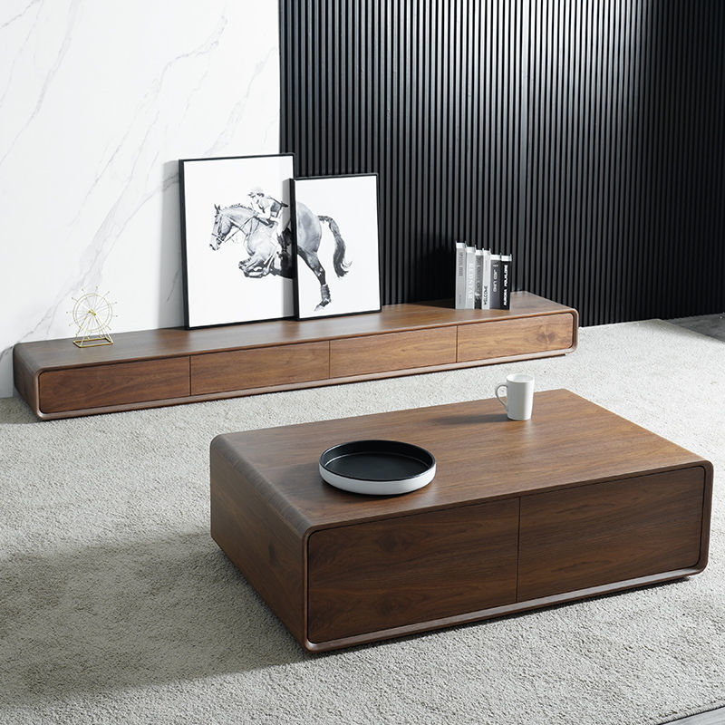 無垢材テレビキャビネットとコーヒーテーブルの組み合わせリビングルームホームテレビキャビネットフロアスタンドオーディオビジュアルキャビネットアンティークスタイルウォールナット家具