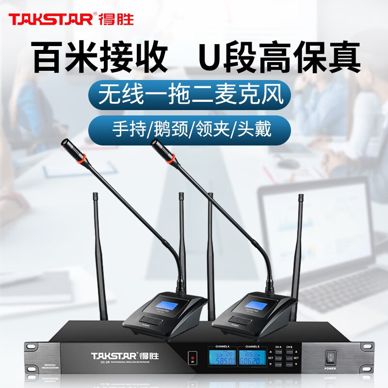 Takstar/タクスター UC-2R 1対2 ワイヤレスマイク 会議用 グースネック ハンドヘルドマイク ラペル アウトドア