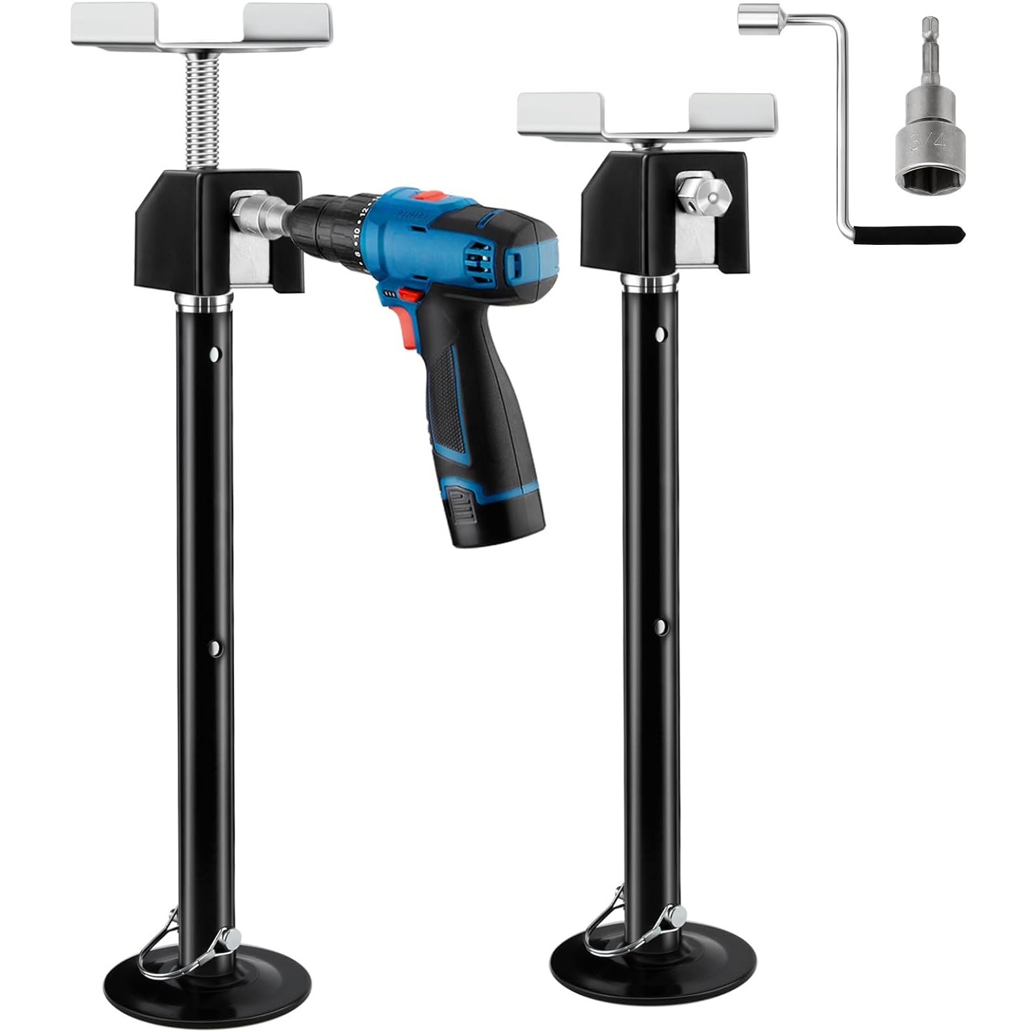 電動トレーラーのジャッキが滑り出してジャッキを支えます。